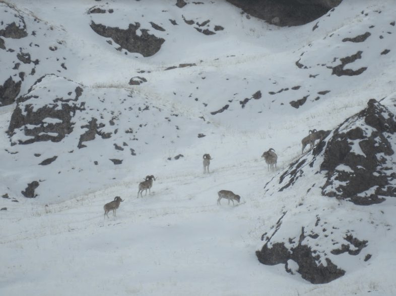 I en dal mødte vi en flok Marco Polo får og et par stærke væddere. Marco Polo’en er et af de mest eftertragtede bjergtrofæer overhovedet. Det var virkeligt også et flot syn.