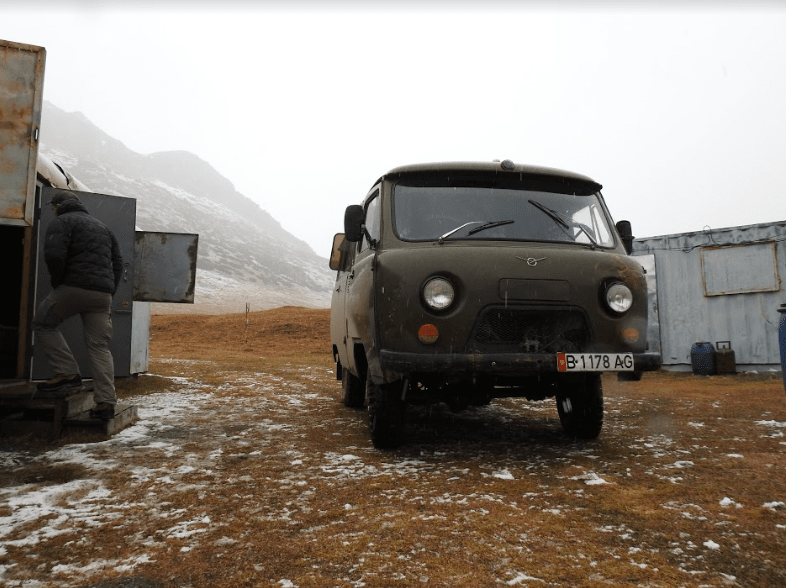 Vi skiftede til et russisk militærkøretøj fra 1986 og fortsatte turen på primitive grusveje, over brusende floder, mod basecamp i bjergene.
