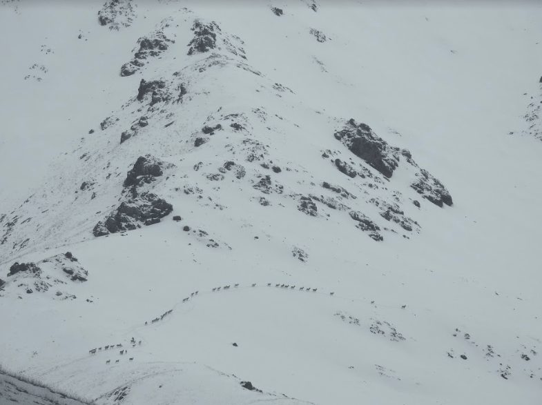 Vi pürcher på en lille flok dyr med en stærk buk iblandt. Dyrene fortrakt over en bjergkam, og et skud var desværre ikke muligt.