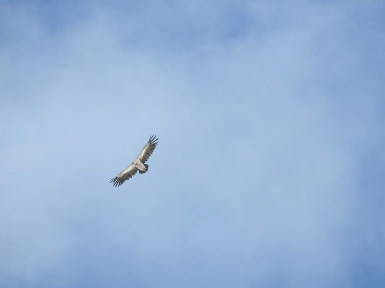 Allerede mens vi arbejdede med dyret, kom de første gribbe til syne på himlen.