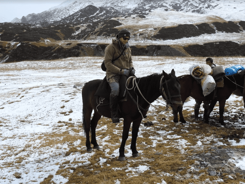 Jeg har nogen erfaring på hesteryg, men måtte sande, at det var en hård tur i terrænet og op i højderne. Nogle passager var så smalle, at kun en enkelt hest kunne komme frem, og der kunne være 200 meter lodret ned til den ene side. Det var så stejlt, at selv hesten syntes at undlade at kigge ned.