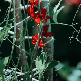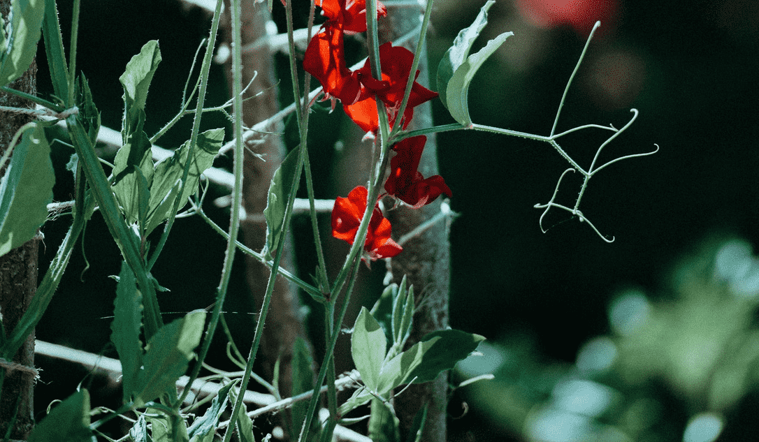 Ærteskud klippes og rød skovsyre plukkes til anretning.