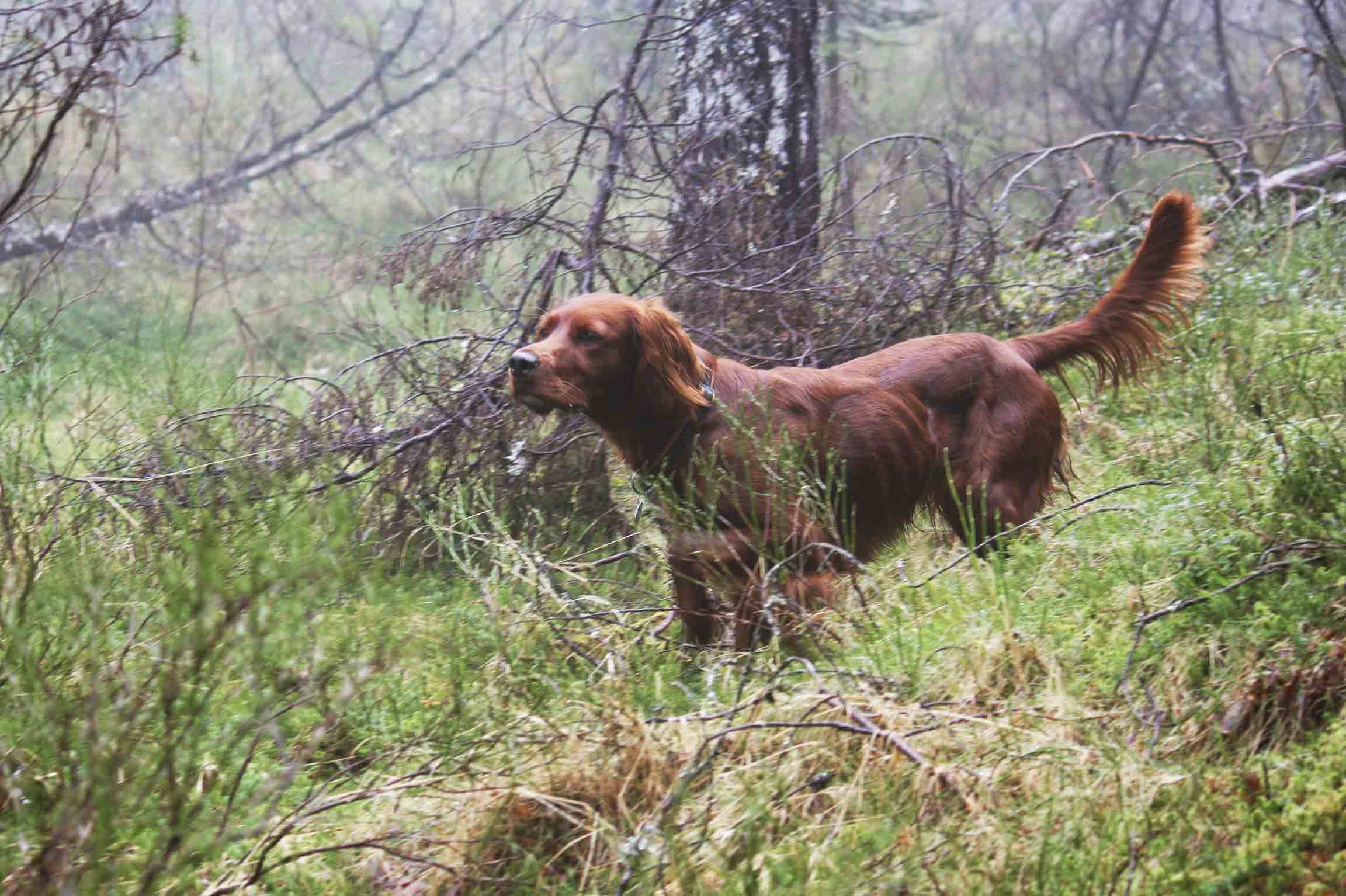 For mit eget vedkommende var jagten ikke afgørende for mit valg, men snarere ønsket om at have en udtryksfuld hund med en stor kapacitet. En hund der kunne give mig mange oplevelser i hundesporten og dermed mange værdifulde timer i den smukke danske natur. Ambitionerne voksede ligeså hurtigt, som vores samarbejde udviklede sig, og vi har nu efterhånden været hele vejen rundt. På træningsbanen, på markprøve, på jagt, på fjeldet, på udstilling og i avlen, og på ingen af områderne har den irske setter skuffet mig.