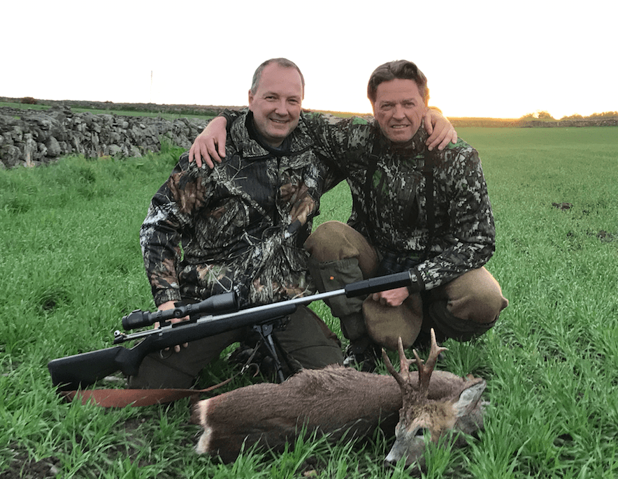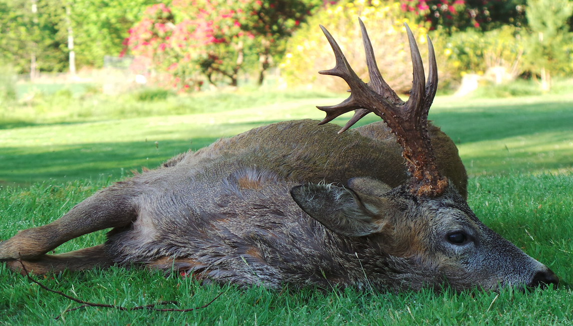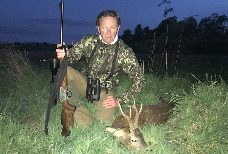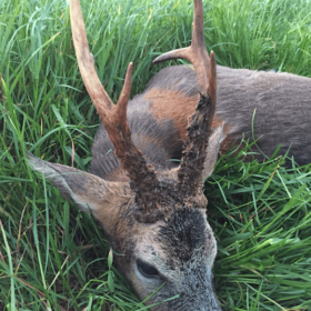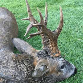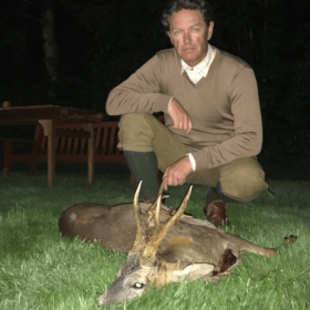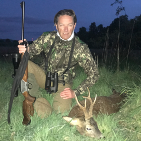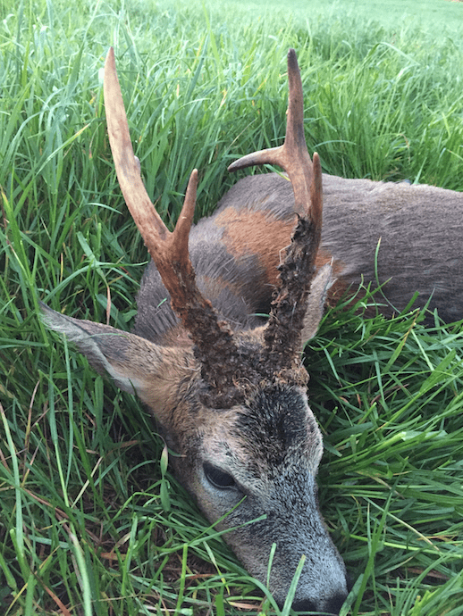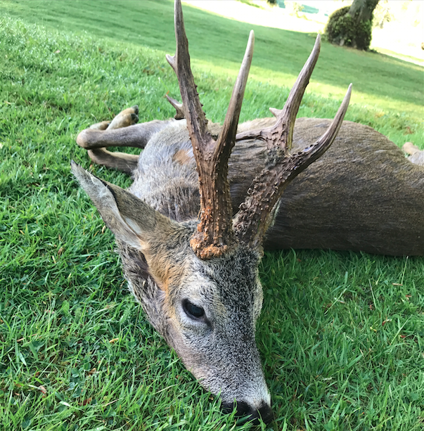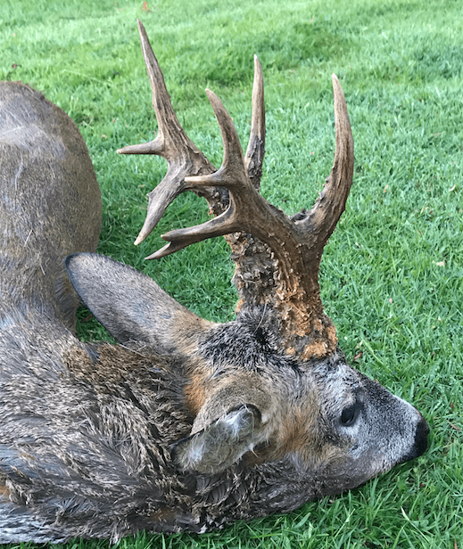 Da vi nærmede os området, hvor bukken tidligere var blevet set, kom den løbende sammen med en rå. ”That’s the one, we are looking for” udbrød Craig uden at have behov for at tjekke i kikkerten først. Vi nåede ikke at entrere terrænet, før bukken og råen forsvandt i løb ind i en mindre skov. Vi måtte således ændre taktik og gå tilbage til bilen.