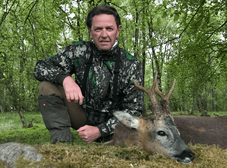 Craig havde præpareret mig om, at et skud kun ville være muligt, hvis bukken bevægede sig mod venstre, da der lå et hus længere inde i skoven mod højre. Vi fortsatte pürchen og nåede ind på ca. 75 meter. Det var ikke muligt at komme tættere på, fordi løvet i skovbunden ville afsløre os. Derfor bad Craig mig om at gøre mig klar, hvis skudmuligheden skulle opstå. Efter at have haft riflen klar i skydestokken i ca. 20 min. begyndte bukken at røre på sig, og den rejste sig for at følge råen. Jeg var helt klar. Jeg ventede spændt på dens næste træk. Selvfølgelig valgte bukken at dreje mod højre, og min chance var passeret. Vi måtte vende om og bevæge os stille tilbage ad den vej, hvorfra vi var kommet og tilbage til bilen. Både Craig og jeg var ærgerlige.