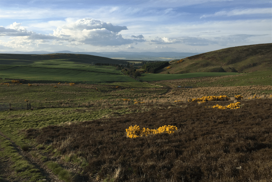 Jeg forberedte mig på aftenens pürch. Craig havde udset sig den buk, som vi skulle prøve at jage. Bukken var en speciel 7-ender. Vi bevægede os af sted ad små kringlede veje i det klassiske skotske landskab med stendiger og levende hegn mellem bølgende bakker.