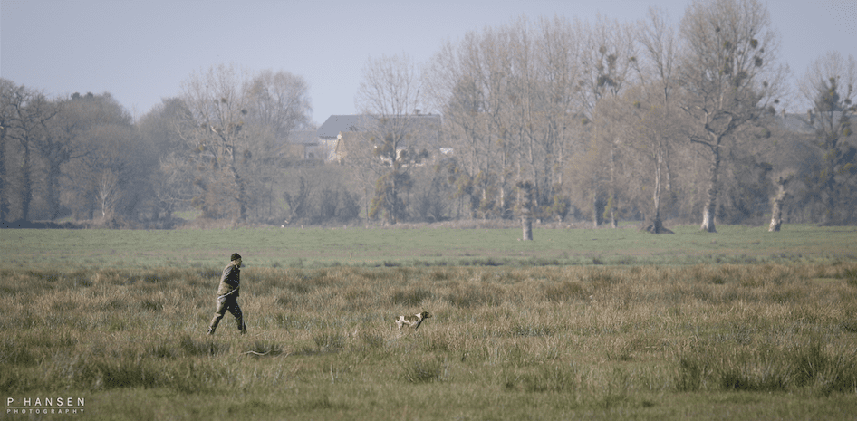 Igennem mine mange år som bretonejer er det lykkedes mig at opbygge et netværk af internationale kontakter. For mig er ferie ofte lig med udflugter med mine hunde. Derfor er det nærliggende at kombinere ferie i udlandet med aktiviteter, der involverer mine hunde. Denne gang gik turen til Normandiet i Frankrig. Her afholdes der markprøver på bekkasiner. Denne type prøve findes ikke i Danmark. Jeg bruger ofte mine hunde til jagt på bekkasiner og synes, at det er en utrolig spændende jagtform. Men ikke alle hunde har flair for at arbejde med disse små, herlige fugle. Heldigvis har mine voksne hunde godt styr på bekkasinerne, og de to unge hunde er i gang med at lære det.