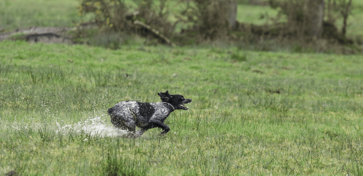Dagen efter havde vejret ændret sig. Det var køligere, grumset og overskyet med støvregn. Til gengæld var terrænet bedre. Terrænet var stort med græs i forskellig længde, lysesiv og spredte småvåde områder. Lige noget for bekkasiner. Igen startede jeg med Odile. Hun gik et fantastisk slip i et kæmpe bredsøg i allerhøjeste fart.