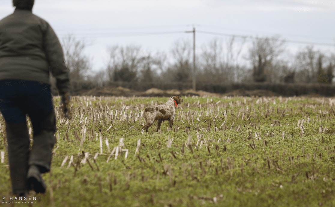 På et tidspunkt var Odile gået en anelse af hånd, men jeg fik kaldt hende til orden. Hun nød den megen plads. Så efter at have fået genoprettet kontakten til hende, søgte hun flot foran mig. Pludselig havde hun en hurtig markering, fulgte straks op og – BANG – stram stand!